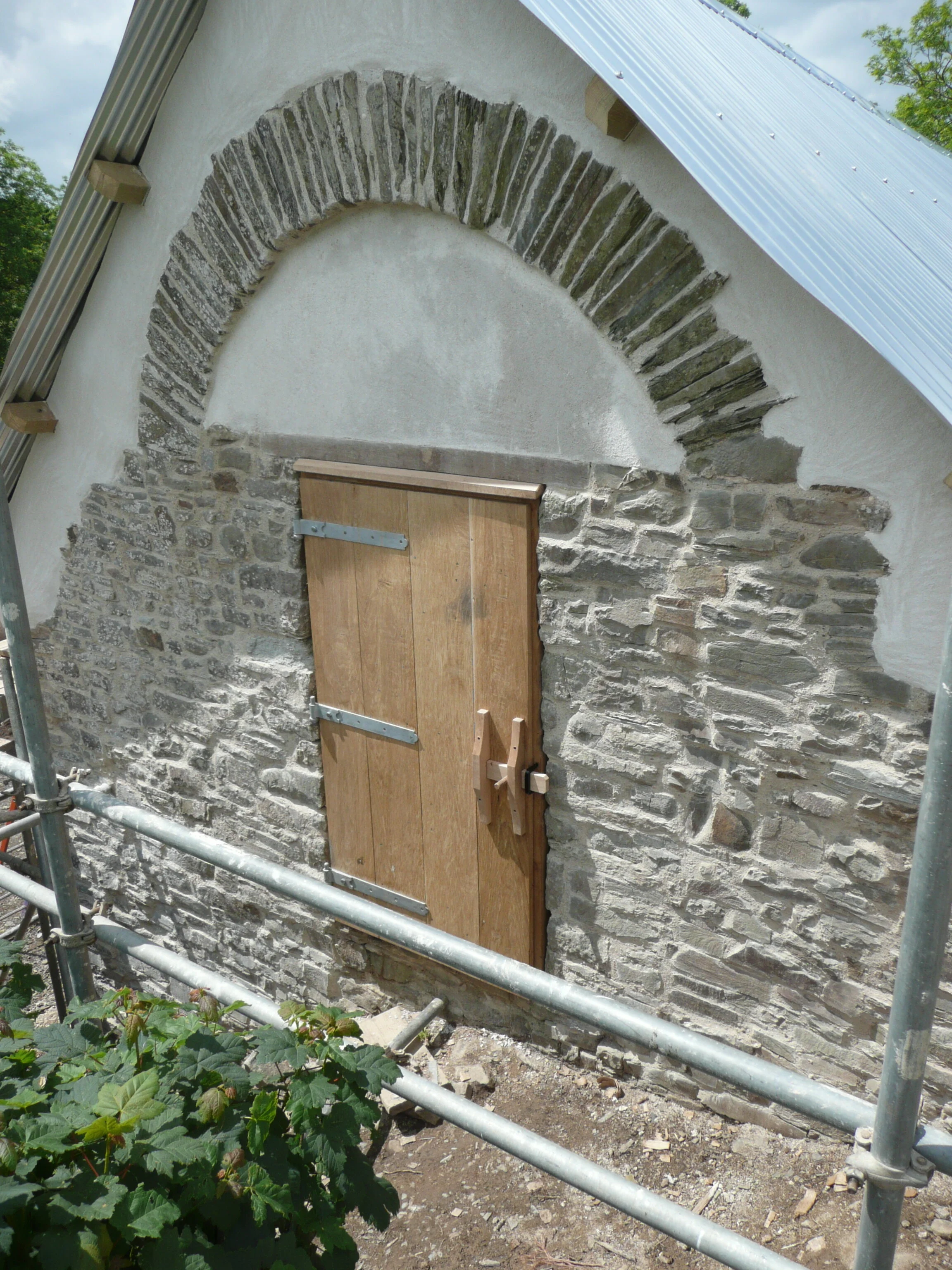 Essential repairs were carried out to stabilise the structure to include stainless steel flitch plates to reinforce the weak principle rafters. A new door was also made from English oak in place of the east window of the chapel